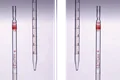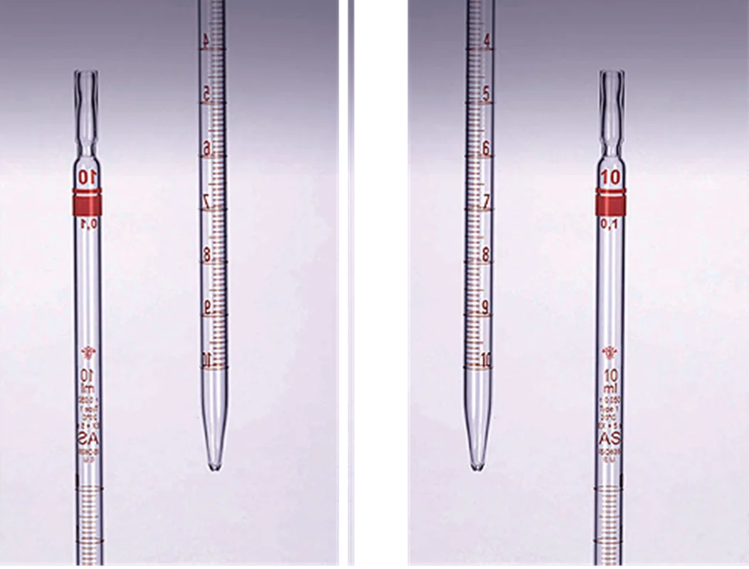 پیپت های مدرج دو دسته هستند: پیپت مور(Mohr pipette) و پیپت سرولوژیک(Serological pipette). یکی از تفاوت های پیپت مور و پیپت سرولوژیک در شروع درجه بندی روی آنها و دیگری این است که پپیت سرولوژیک به عنوان انتقال دهنده(TD) و پیپت مور به عنوان نگهدارنده(TC) نیز مورد استفاده قرار می گیرند. در پیپت سرولوژیک به منظور اندازه گیری دقیق باید حتما آخرین قطره هم تخلیه شود. اما در پیپت های مور برای اندازه گیری حجم درست اندازه گیری، طراحی شده اند، بنابراین یک مقدار مایع در نوک آن باقی خواهد ماند. پیپت های سرولوژیک یا پیپت های انتقال دهنده در بالای آنها یک خط رنگی وجود دارد و برای مور در بالای آن خطی نیست و در صورت وجود خط، نشان دهنده ی حجم آن می باشد.