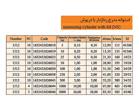 با توجه به اینکه استوانه مدرج دارای دو حالت شیشه ای و پلاستیکی می باشد با توجه به شرایط کاری می توان از هر کدام از آنها استفاده نمود. در سری شرایط ملزم به استفاده از استوانه مدرج شیشه ای بوده به جهت اینکه مقاوم در برابر یکسری از حلالها، غیرقابل نفوذ و نشتی ناپذیر هستند.
